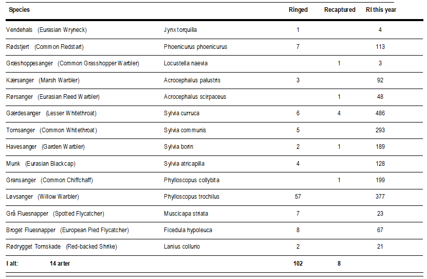 I alt blev 102 fugle mærket hvilket er helt igennem godkendt!