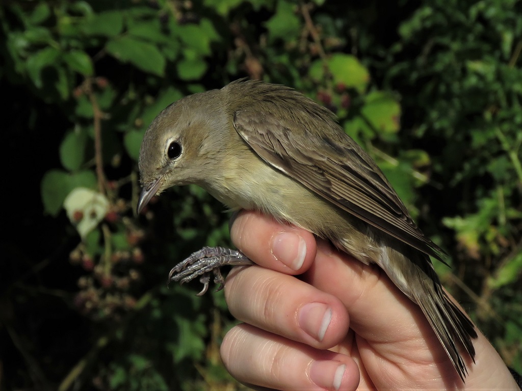 Sivsanger fra dagens ringmærkning. Foto: Joakim Matthiesen.