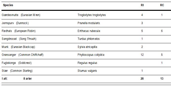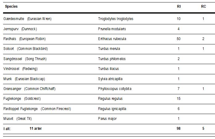 I alt blev det til 299 fugle på træk fordelt på 28 arter.