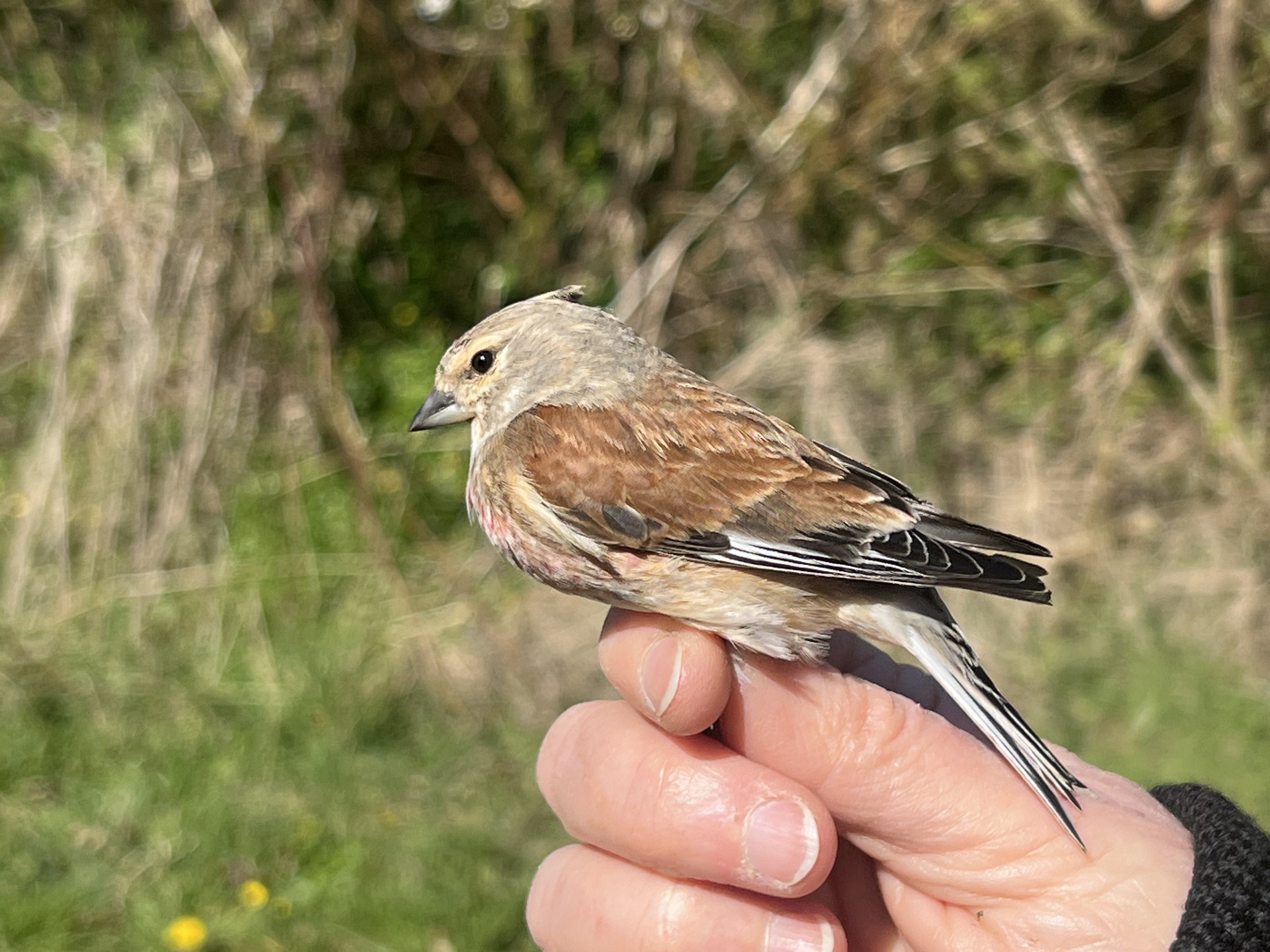 After they left with Ole, it was time to open the nets, even though the strong easterly wind suggested it would be a quiet morning. Eighteen birds were ringed this morning, ten of which were Gråsisken (redpolls), in the same net. At least I had time to observe and compare them, which is good because we don't ring many of them in France. This has taught me a lot about the criteria that distinguish the subspecies. Of the ten birds, at least two were Acanthis flammea flammea.