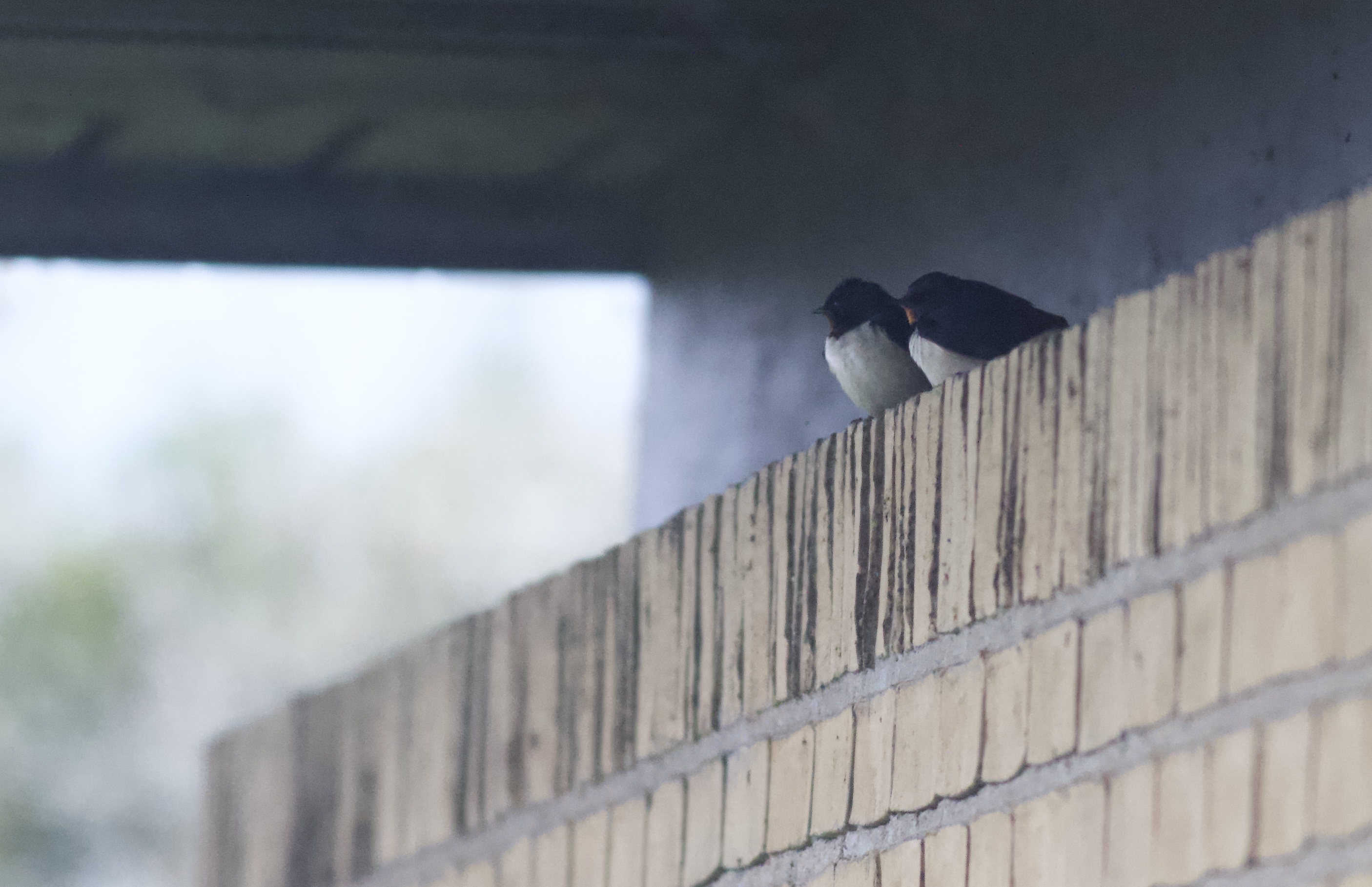 Nogle af de lokale landsvaler (Hirundo rustica) satte sig også i læ for regnen. Foto: Oliver Bøgh Jensen